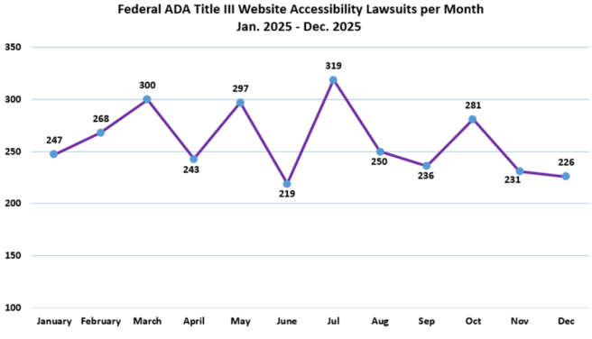 Seyfarth Synopsis: Plaintiffs filed 3,117 website accessibility lawsuits in federal court in 2025 – a 27% increase from 2024.